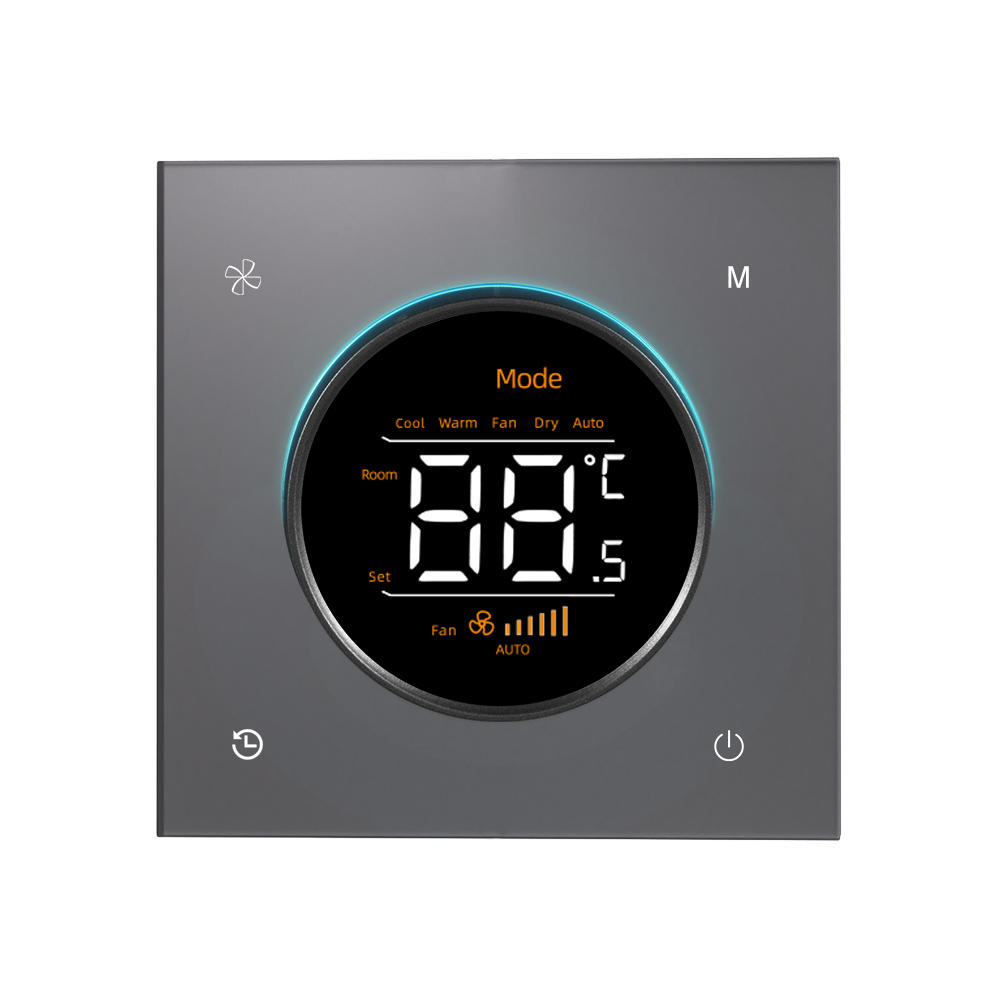 The X39UAG Air Conditioning Knob Smart Thermostat from NaLite Smart adopts an innovative segmented AG glass modular design, perfectly blending classic knob operation with modern smart temperature control. The product features a high-precision temperature control knob and LCD display, supporting accurate temperature adjustment and mode switching, preserving intuitive physical operation while providing clear digital feedback. Each functional module utilizes an independent encapsulated design, supporting flexible configuration and convenient maintenance, making it particularly suitable for commercial venues requiring centralized temperature control management, such as hotels and office buildings. The panel maintains the excellent fingerprint-resistant and anti-glare properties of AG glass, equipped with a smart backlight display system that clearly shows temperature parameters under various lighting conditions. Precise voice control for commands like “set to 24 degrees” and “switch to heating mode” is enabled through major platforms including Smart Life, Apple HomeKit, Siri, Amazon Alexa, and Google Assistant. As a professional OEM/ODM partner, we offer comprehensive customization: flexible customization of colors (White/Grey/Black/Gold and custom options), materials (AG Glass/Aluminum/Stainless Steel/PC, etc.), and communication protocols (Tuya, Zigbee 3.0, WiFi, Matter, etc.), along with private SDK development and end-to-end technical support to help you create more competitive smart thermostat products.